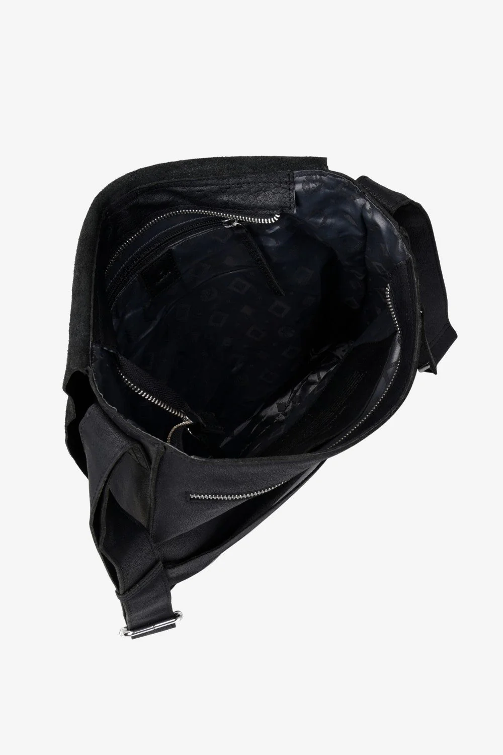 Messenger bag in durable leather with practical storage compartments. Interior and exterior pockets ensure easy organization, and the long adjustable shoulder strap provides flexible carrying comfort. Closes with a zipper and flap.