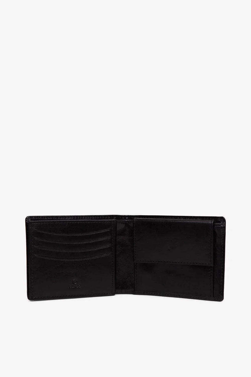 Stylish and functional wallet with ample space for cards, cash, and coins. Three bill compartments and a small coin pocket provide practical organization. RFID protection prevents unauthorized card scanning.