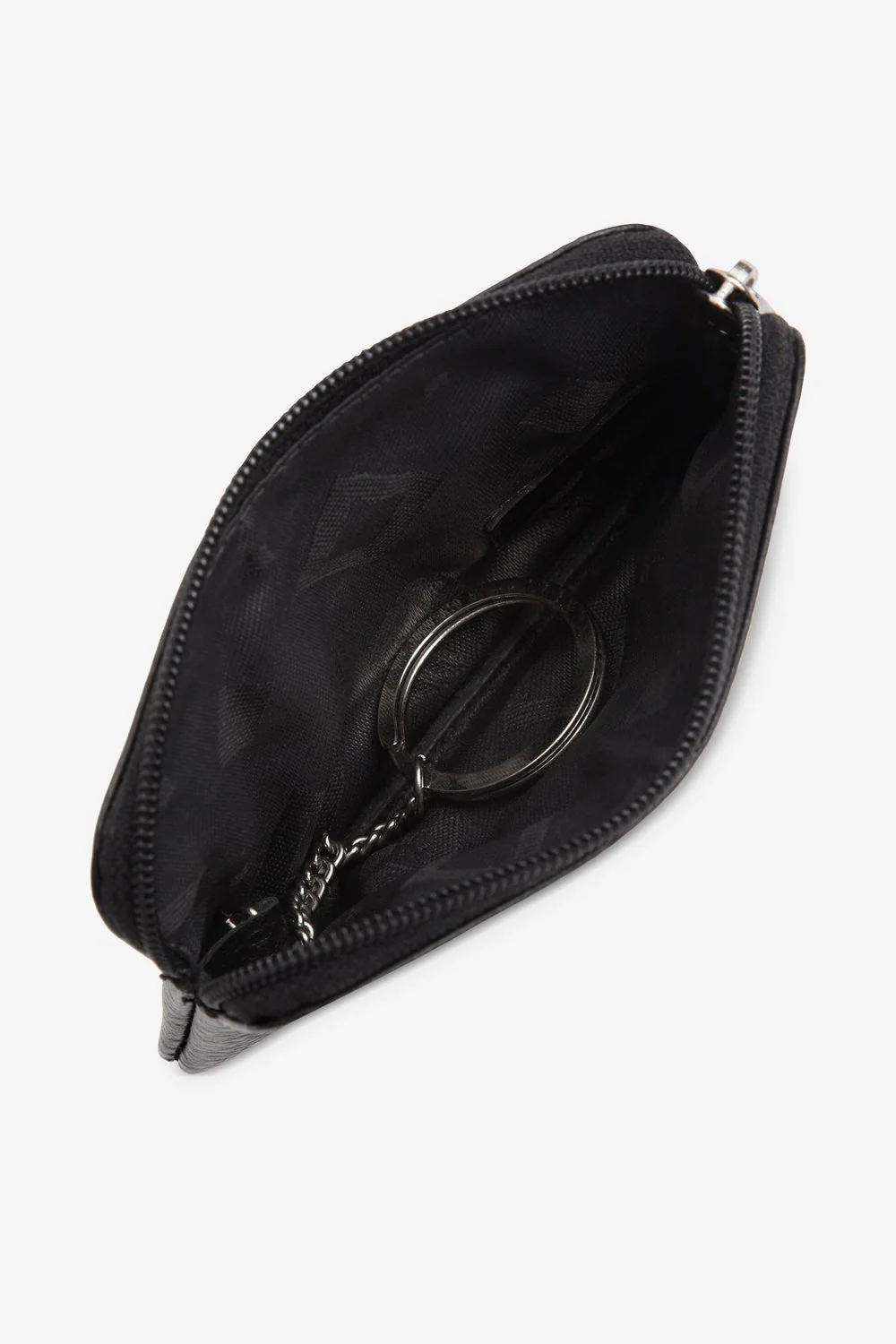 Practical key pouch with a zip closure and an interior chain with a key ring. It can also function as a small wallet with space for cash and cards. RFID protection keeps your cards safe from unauthorized scanning.
